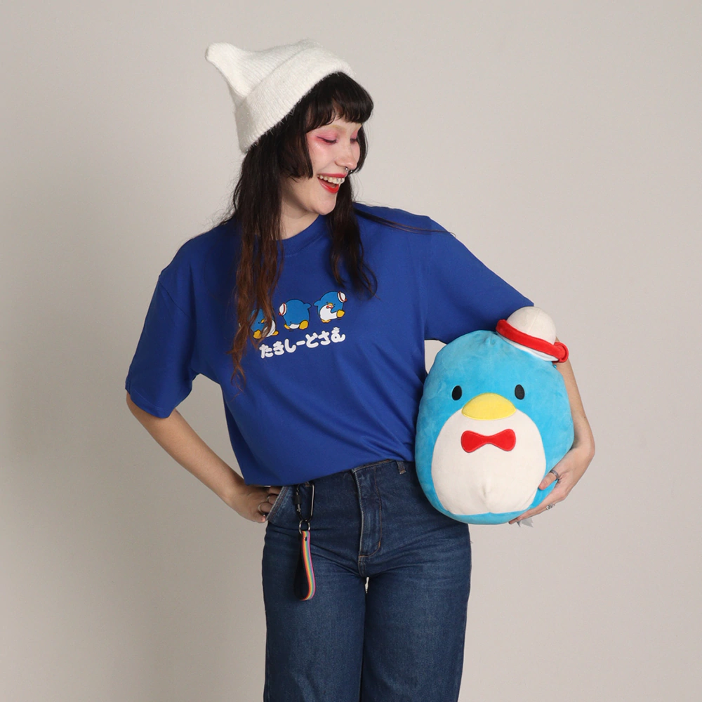 Com esse azul fofinho e as poses mais encantadoras do Tuxedo Sam, essa camiseta é puro charme!